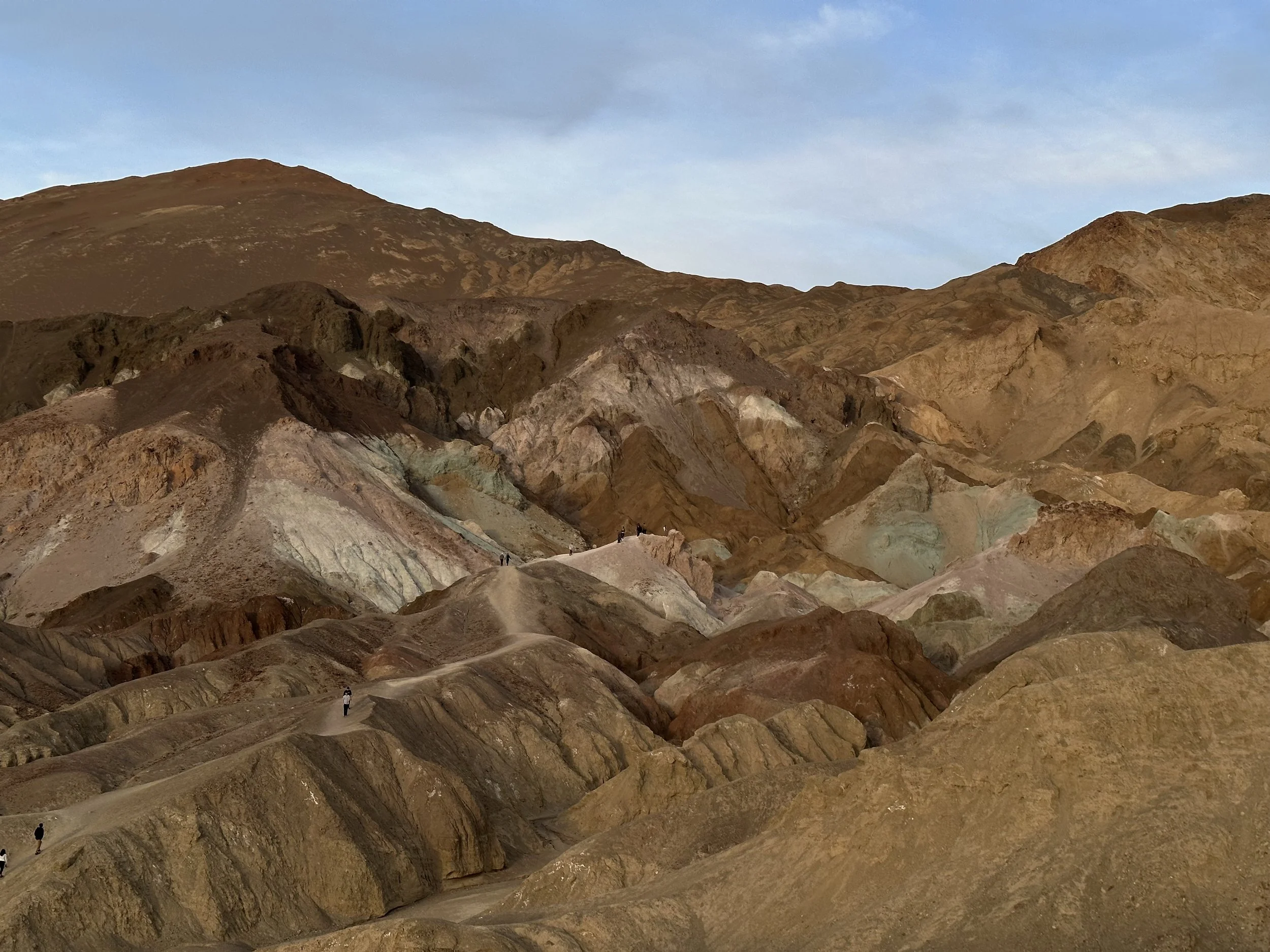 End your day with a drive along Artist’s Drive, which is about 20 minutes from Dante’s View. The road takes you through colorful hills known as Artist’s Palette, where the volcanic rocks are streaked with vibrant colors of red, purple, green, and gold. The late afternoon light makes these colors pop, so it’s best to visit at this time.